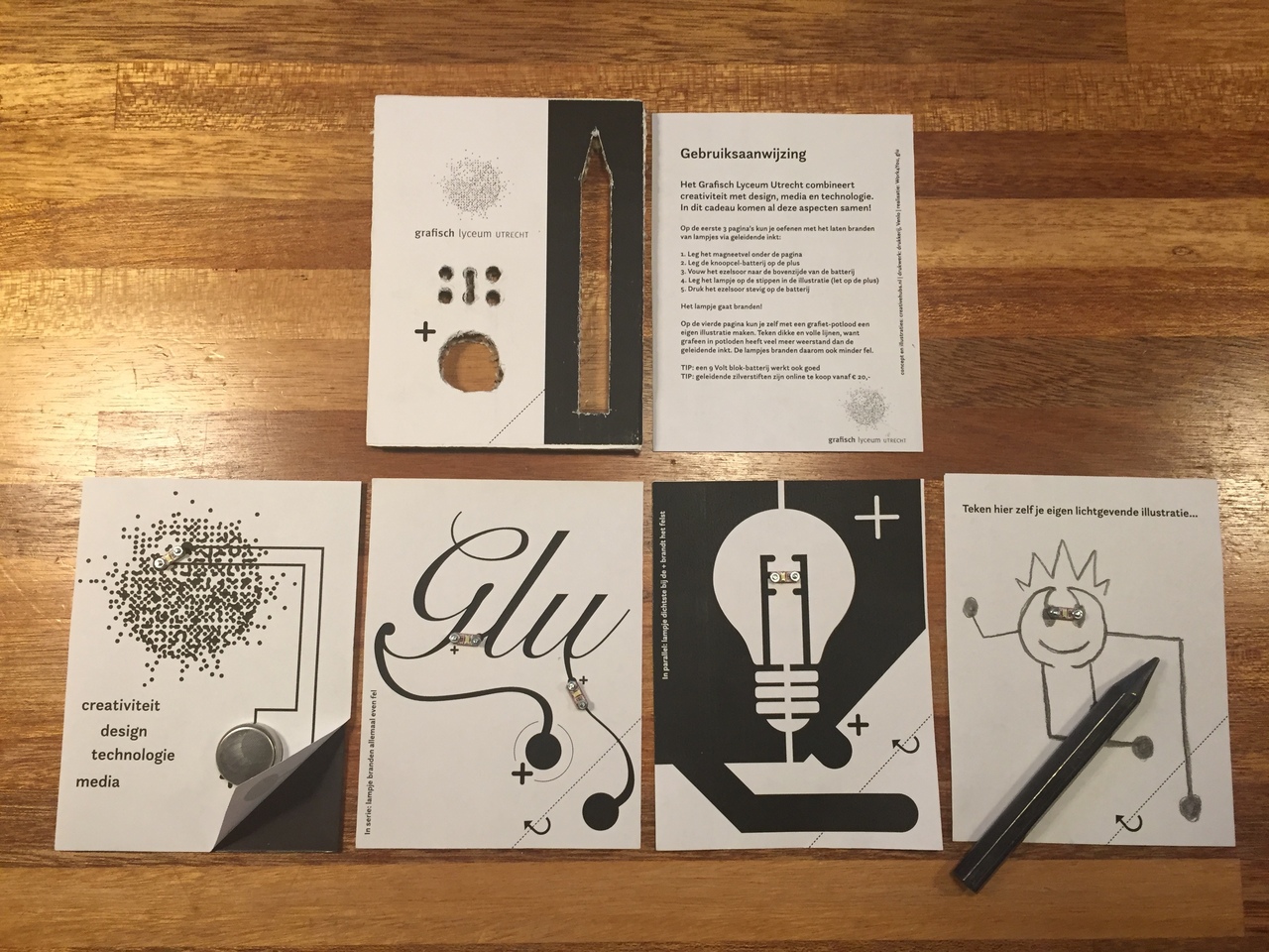 Het Grafisch Lyceum Utrecht vroeg mij om na te denken over een creatief technisch relatiegeschenk. Tekenen, drukken, boekbinden, stroom en lampjes komen hierin samen. Ik heb er een ontwikkeld voor € 6,50