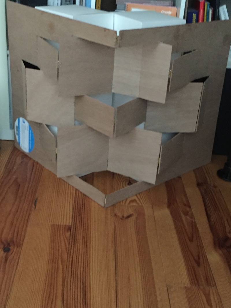 Houten 3D bord voor projection mapping, geïnspireerd op popup-boek.