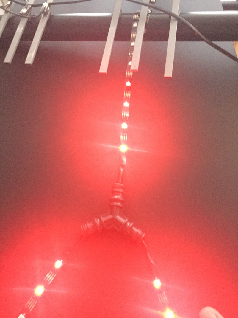 Via een Utrasoon Sensor (digitale afstandsmeter) stuurt een Arduino een LED-strip aan. De led's gaan sneller knipperen/lopen zodra er iemand de installatie nadert.