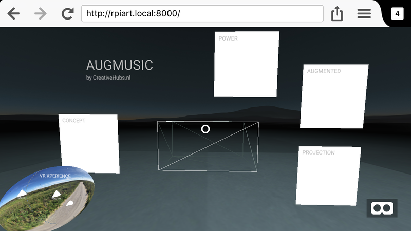 Opzet voor de Virtual Reality pagina die op de RaspberryPi draait. Deze RPI is te benaderen als wifi AccessPoint, dus heeft geen internetverbinding nodig om deze webpagina te kunnen draaien.