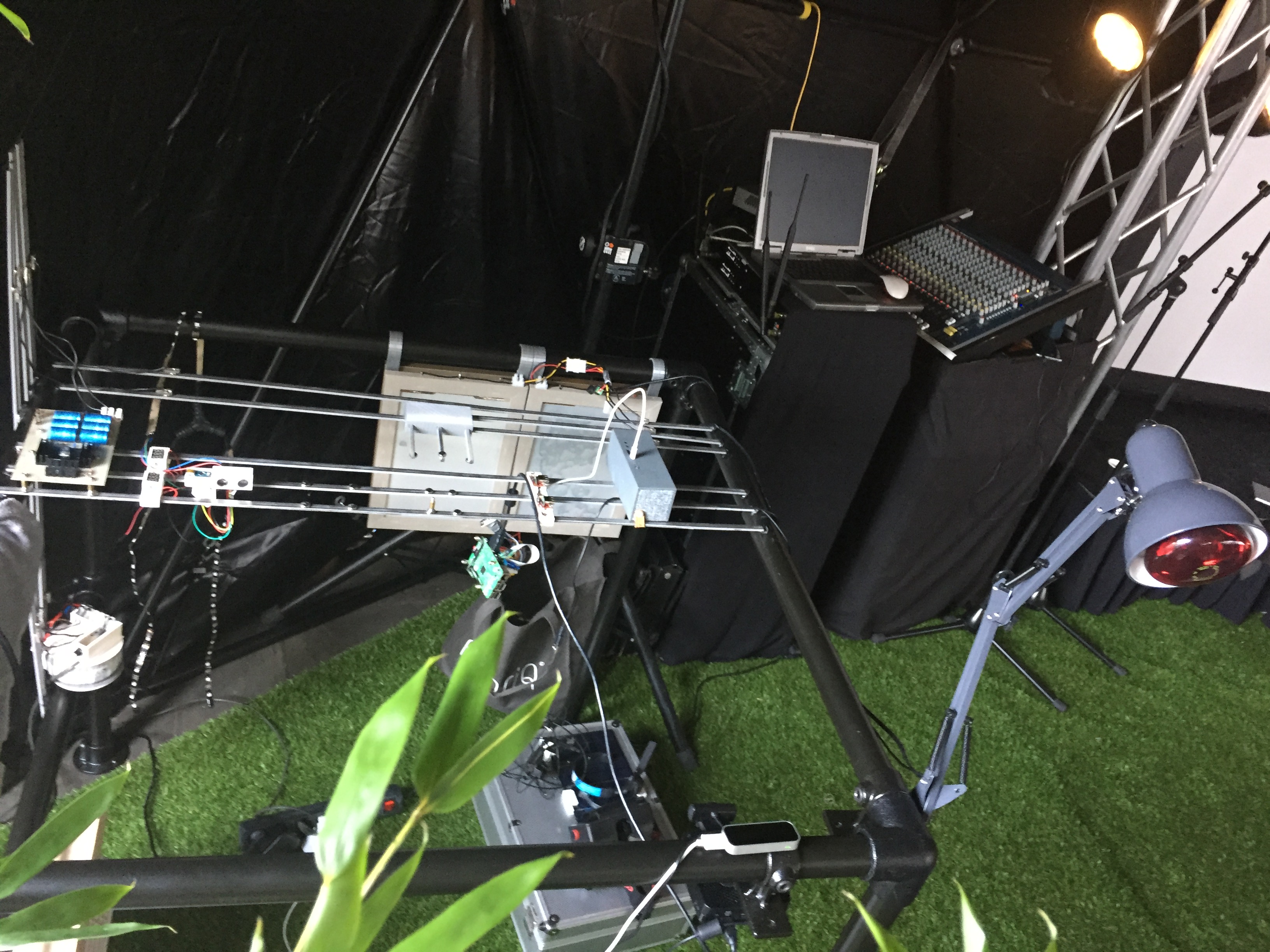 Deze projectie wordt bestuurd met een Leapmotion controller en reageert op omgevingsgeluid. De projectie wordt gedaan met Videomapping software en een beamer. De Leapmotion interactiviteit wordt geregeld op een webpagina. Deze wordt dan weer naar de mapping-software gestreamd.